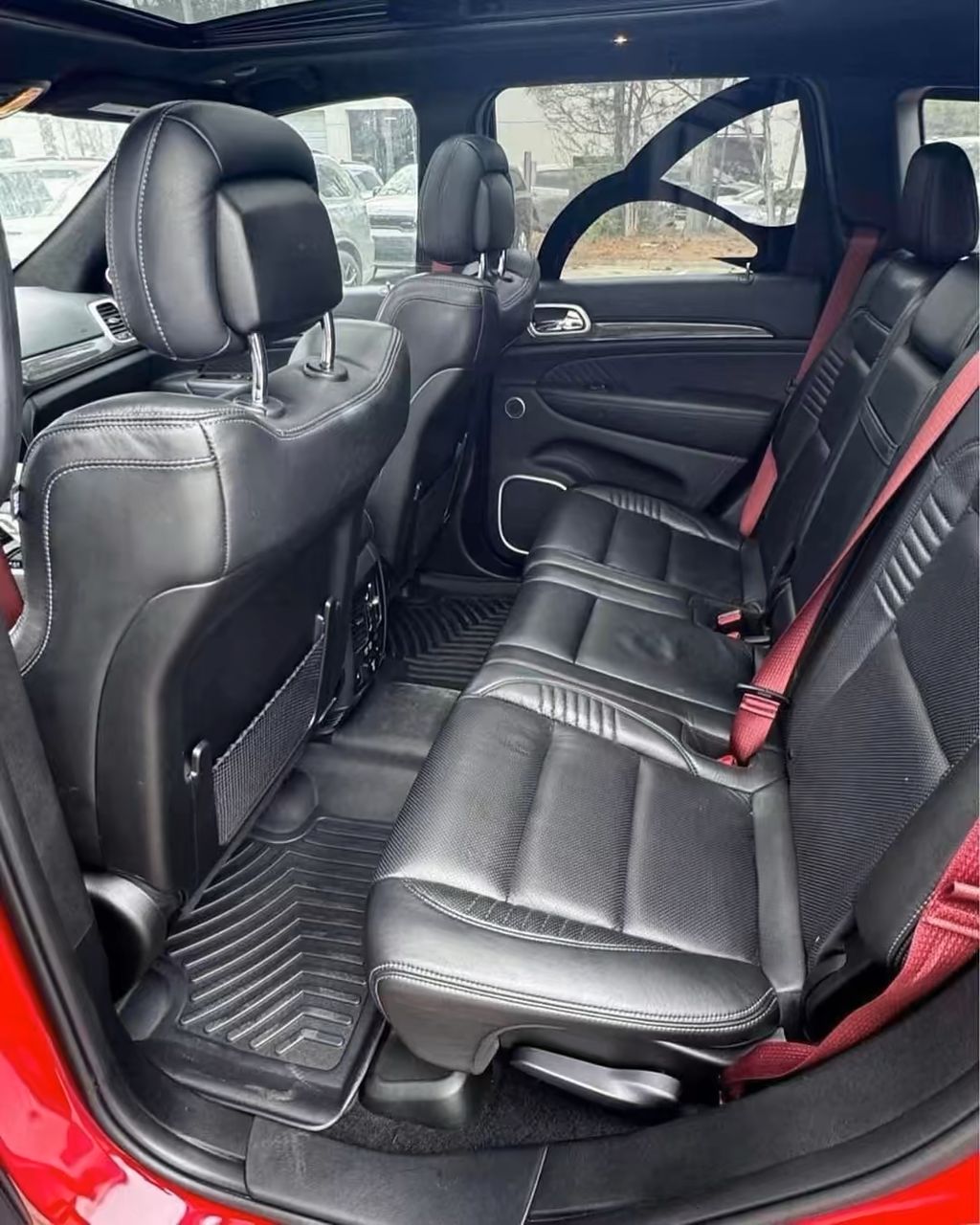 • Luxurious Interior: Inside, the Grand Cherokee Trackhawk offers a high-quality cabin with premium materials and comfortable seating for up to five passengers. Features include leather upholstery, heated and ventilated seats, and a spacious layout.